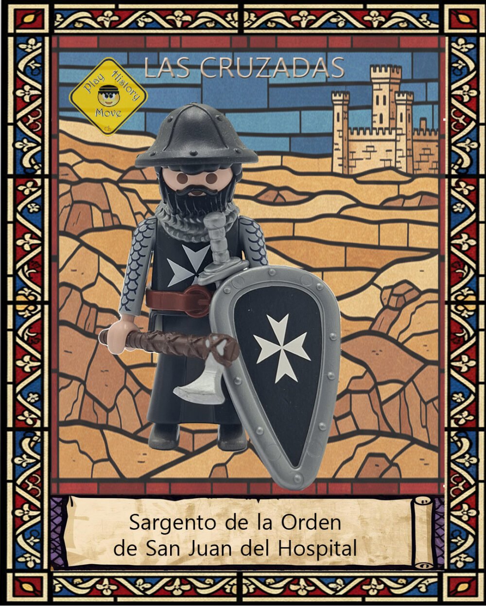La Orden de San Juan se militarizó en las décadas de 1120 y 1130, contratando caballeros que luego se convirtieron en Hermanos Hospitalarios. La organización pasó a ser una orden religiosa militar según su propia carta papal, encargada del cuidado y defensa de Tierra Santa, y luchó en las Cruzadas hasta el sitio de Acre en 1291. La orden adoptó la regla de San Agustín, el hábito negro y una cruz de paño blanco con ocho puntas, las ocho bienaventuranzas.